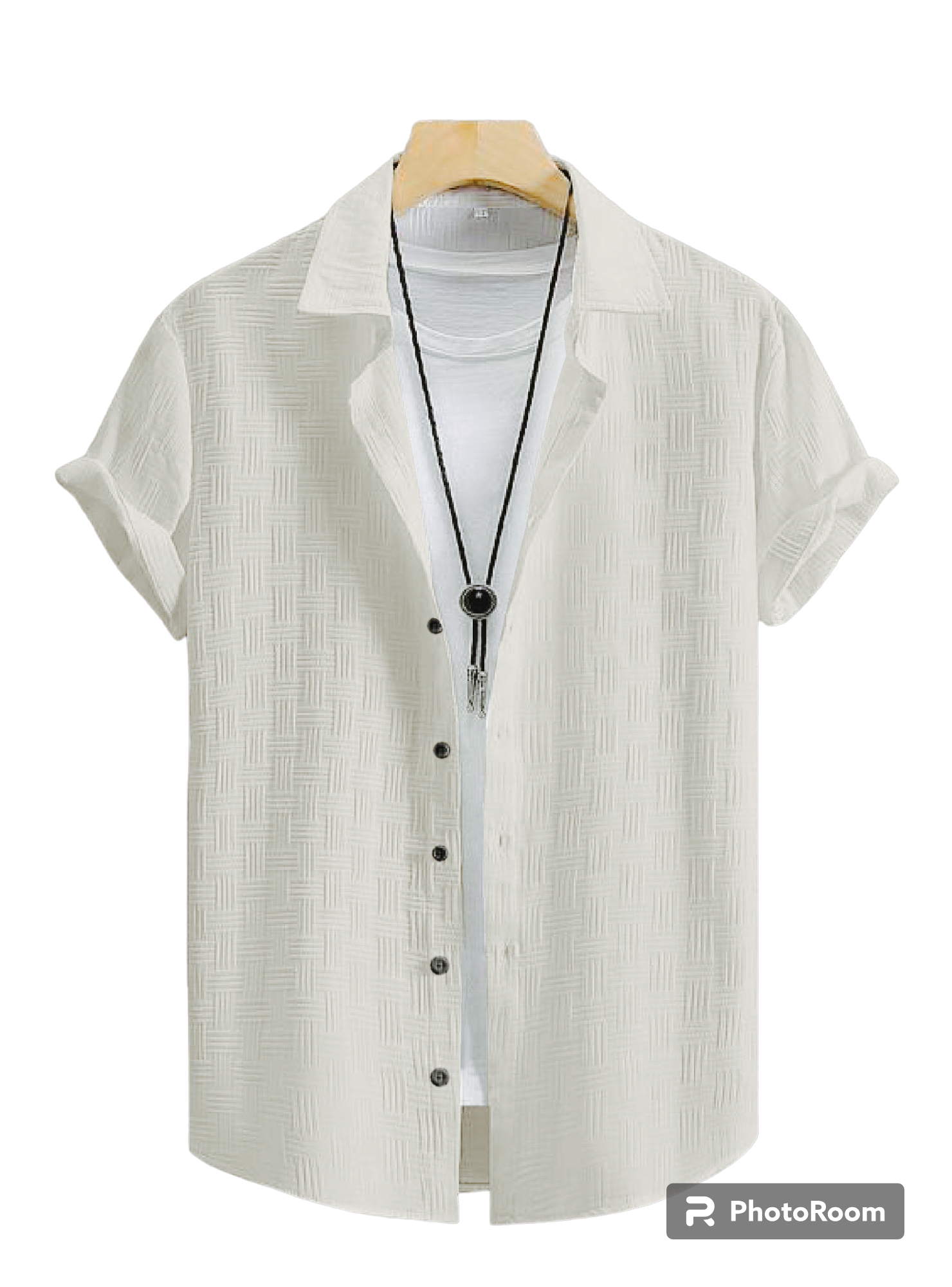 Short-sleeve casual shirt with textured fabric, button-down style, and a comfortable fit — perfect for smart and everyday wear.
